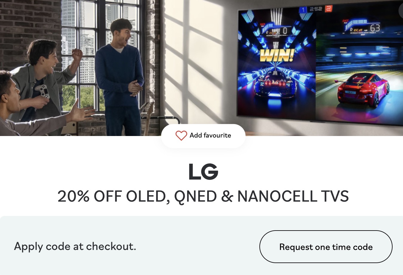 - pass over: 20% off OLED, QNED & NanoCell TVs